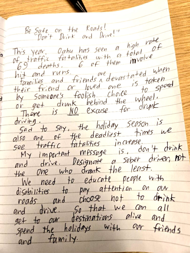 With 69 fatalities on Oahu’s Roads this year, we need to educate people with disabilities to be more aware on the roads and make the right choices as we enter into the holiday months.